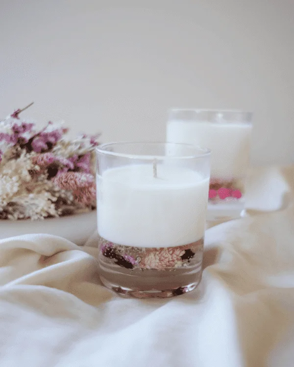 Aprende a criar uma vela única feita com multi-camadas com decoração de flores secas!